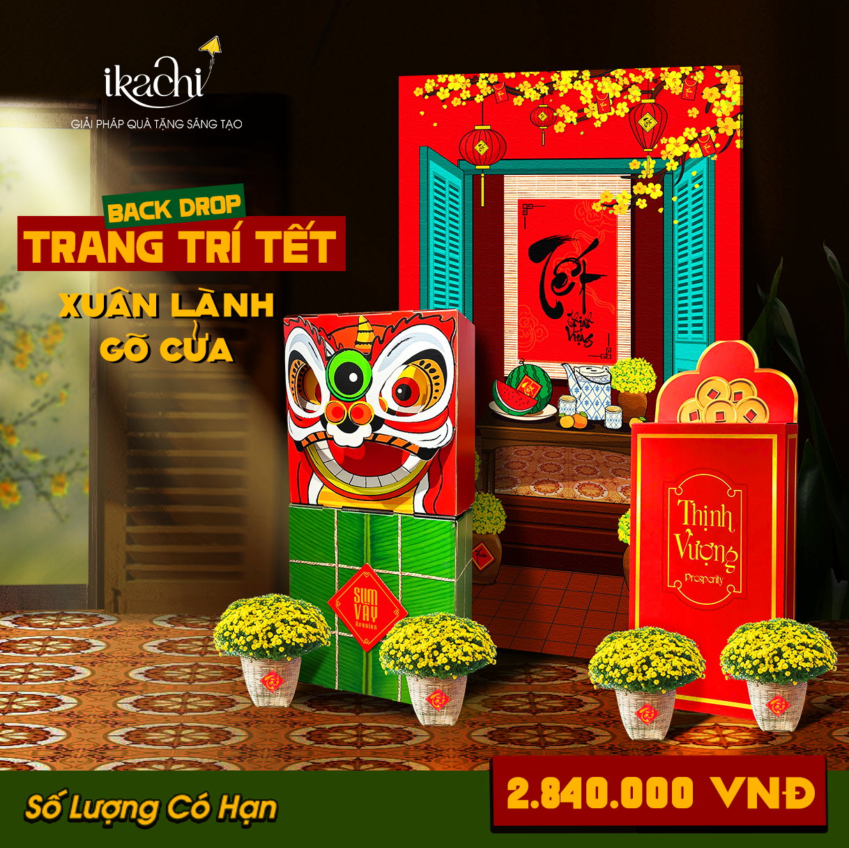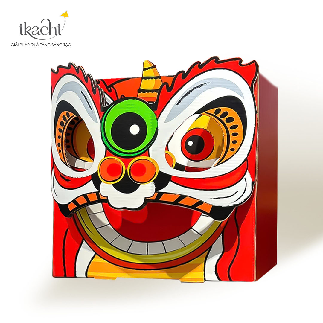 Backdrop mở ra khung cảnh Tết giản dị nhưng ấm áp. Bánh chưng tượng trưng cho sự vẹn toàn, gắn kết. Đầu lân xuất hiện không mang sắc thái lễ hội sôi động, mà như một linh vật canh cửa, mang ý nghĩa trấn an – bảo hộ – đón điều lành. Bao lì xì là lời chúc nhỏ nhưng chân thành: chúc một năm mới yên vui, thuận hòa.