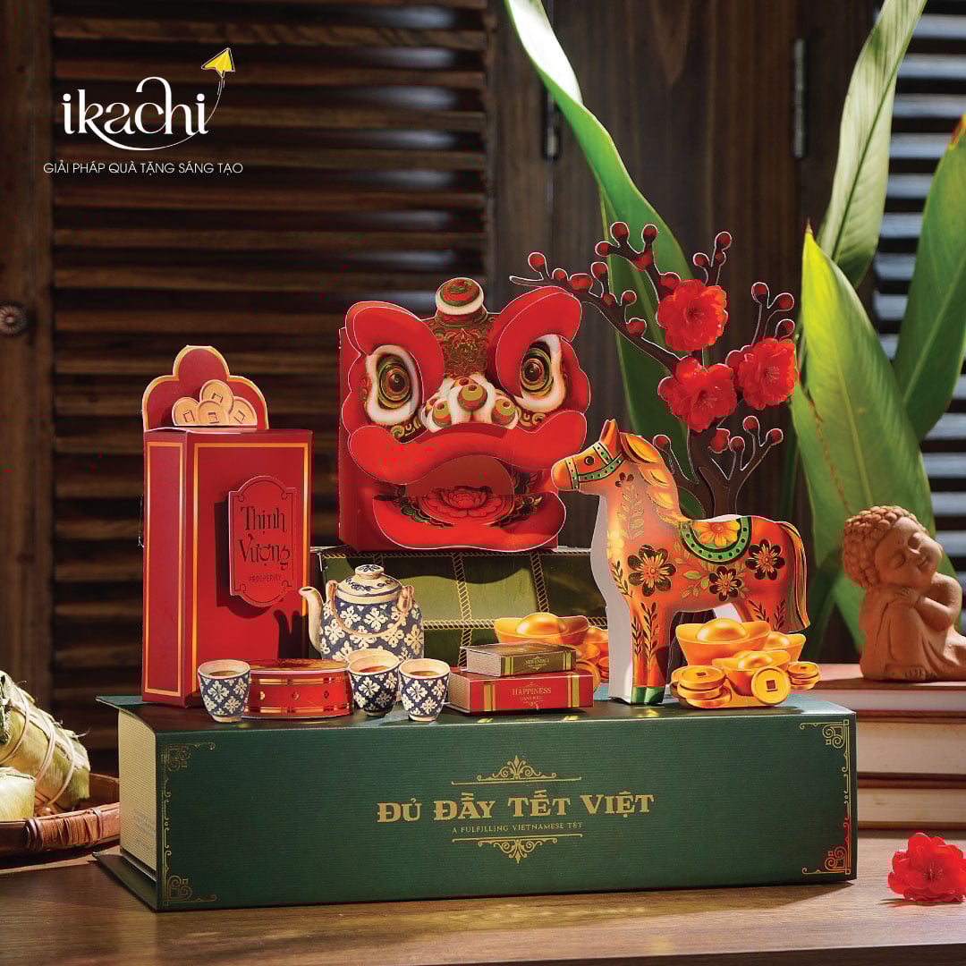 Bộ Quà Tết Xanh Khai Xuân Phú Quý được Ikachi hình tượng hóa như một quyển sách mùa xuân – “Đủ Đầy Tết Việt”, nơi mỗi trang giấy mở ra là một phong tục đẹp về những phong tục cổ truyền đầu năm. Trẻ em khai bút để cầu một năm học hành tấn tới, người lớn khai bút để gửi gắm lời chúc bình an, may mắn và thịnh vượng, hay ông đồ khéo léo viết những câu đối đầy ý nghĩa, mang theo niềm hy vọng về một khởi đầu trọn vẹn. Từ phong tục thiêng liêng này, người Việt trao nhau niềm tin về một năm mới sung túc, đầy đủ – và chính niềm tin ấy đã truyền cảm hứng cho Ikachi tạo nên bộ quà Tết đặc biệt này.
