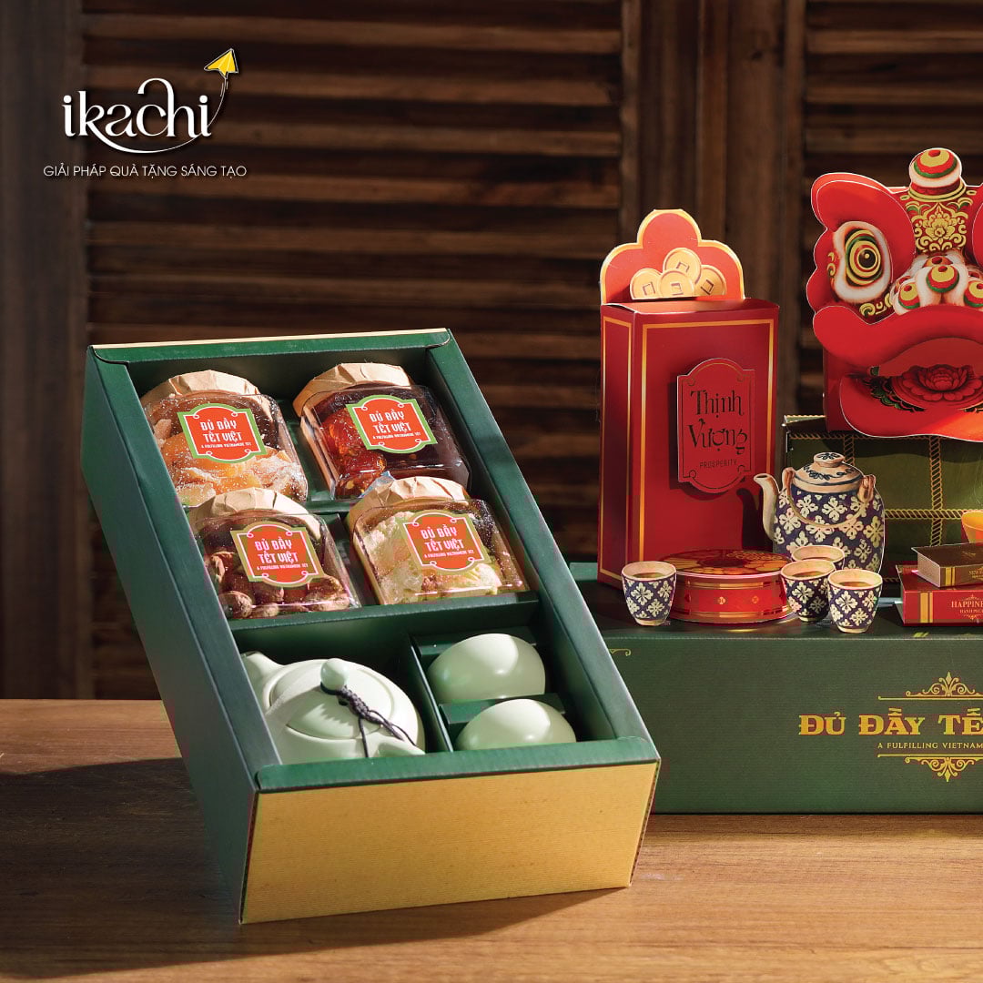 Là một phần không thể thiếu mỗi khi các gia đình Việt đón khách đến nhà đầu năm, Ikachi gửi gắm vào Quà Tết Xanh “Khai Xuân Phú Quý” cái phong phú của các loại mứt Tết, từ xoài sấy dẻo, mít sấy thăng hoa giòn xốp đậm vị từ vùng sông nước Tiền Giang, đến mận sấy dẻo chua ngọt trứ danh vùng Mộc Châu, còn có cả trà xanh Thái Nguyên cùng bộ ấm chén sứ. Tất cả để khách thương có thể thưởng xuân một cách trọn vẹn, bằng sự ngọt ngào của mứt Tết, bằng sự thanh tao của thức uống gói gọn cả nét đẹp văn hóa của người Việt, trọn vẹn trong hương vị và trong cả niềm tự hào đối với nông sản quê nhà.